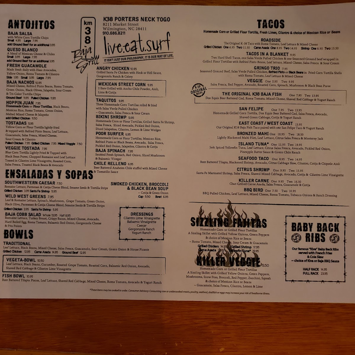 Welcome to K38 Baja Grill, a vibrant culinary destination located at 8211 Market St, Wilmington, NC 28411, where the flavors of Baja California come alive! This lively grill prides itself on serving up fresh, delicious fare with an emphasis on bold flavors and high-quality ingredients. Beyond the menu, K38 Baja Grill embodies a laid-back, welcoming atmosphere complemented by attentive service, which keeps diners coming back.